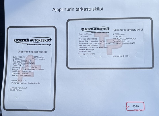 Tarkastuksen yhteydessä ajopiirturi kalibroidaan tarvittaessa ja varmistetaan sen moitteeton toiminta.